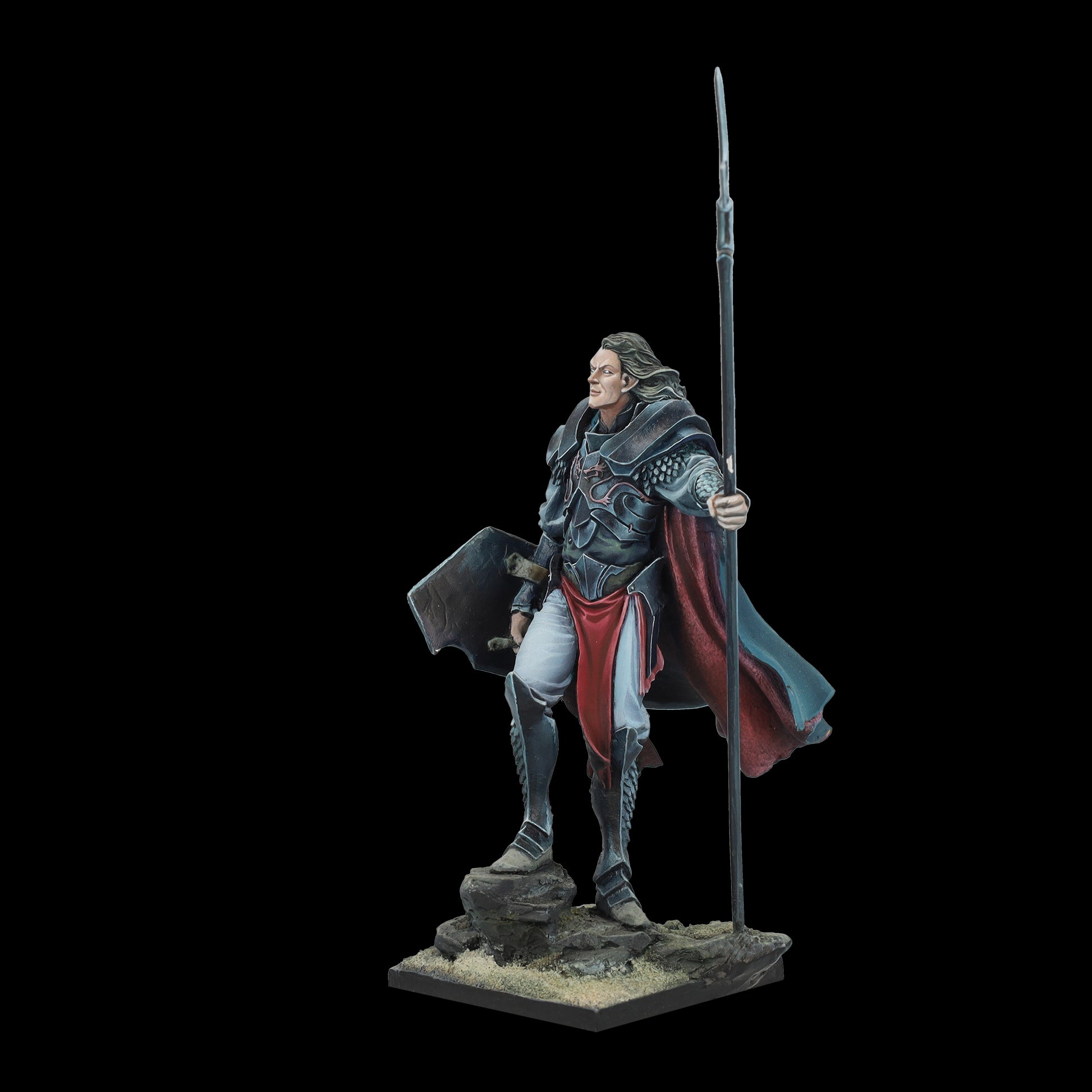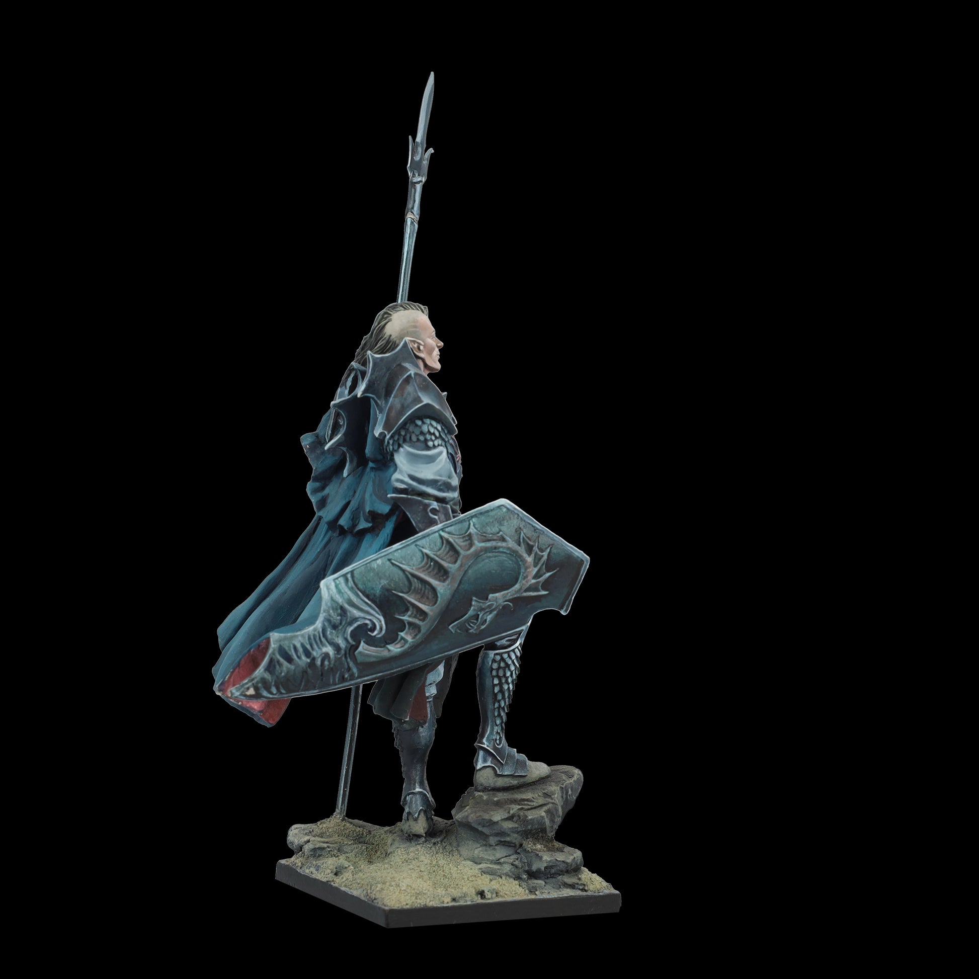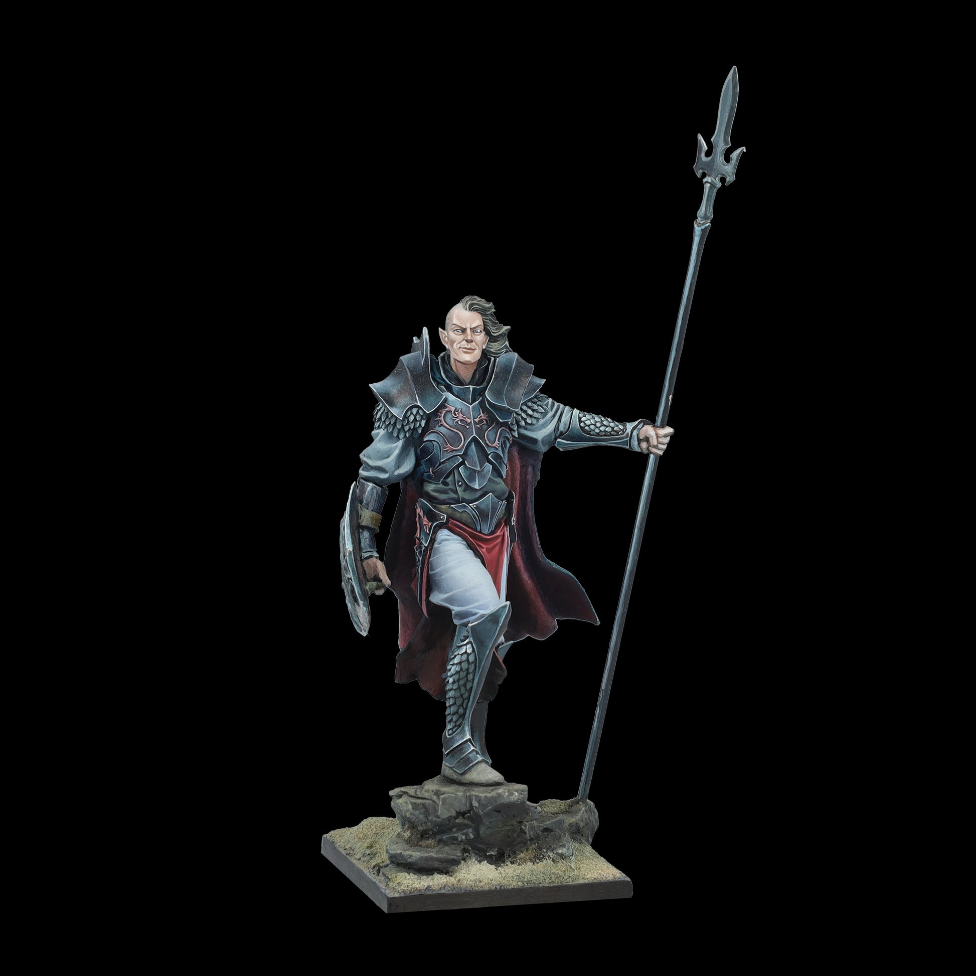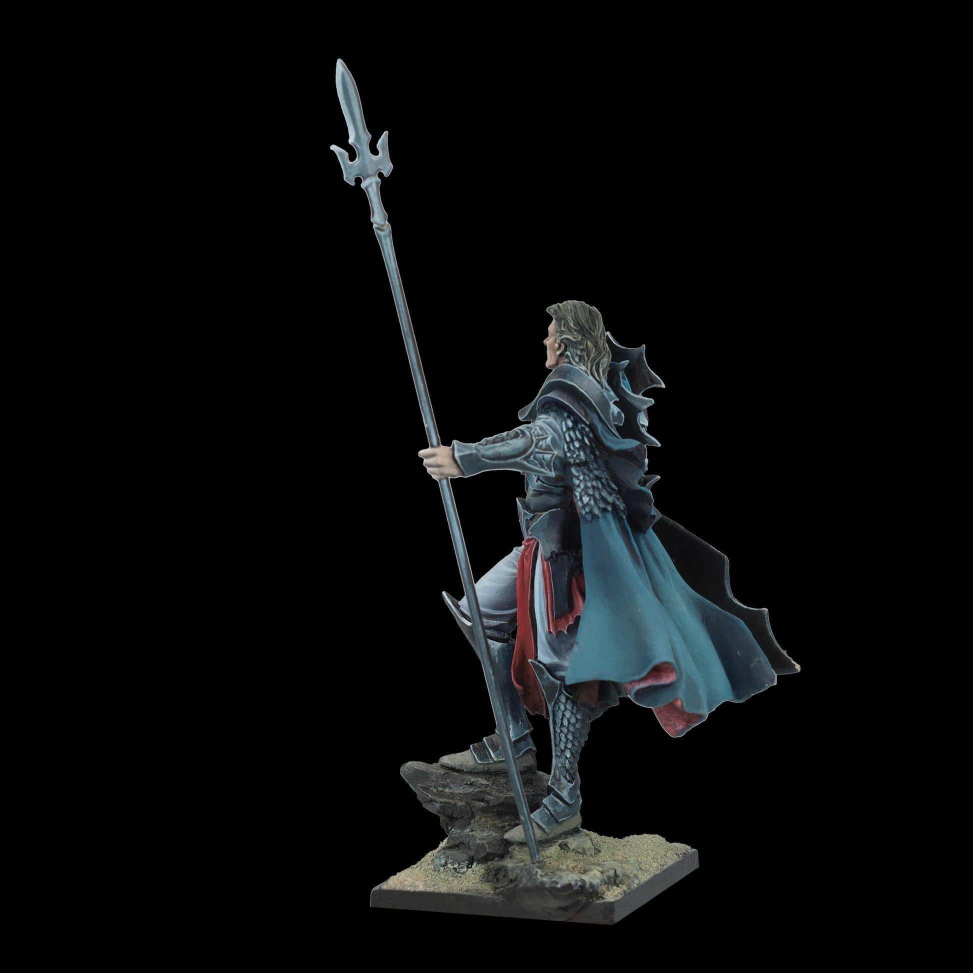 The guardian of the northern passage, of the cliffs that separate land and sea, where the horizon is always black and ships disappear without a trace. Rumors tell of the elf who drank the blood of a dragon that floated to the rocks. They say it dyed his spear red, and the wounds it inflicts never heal.