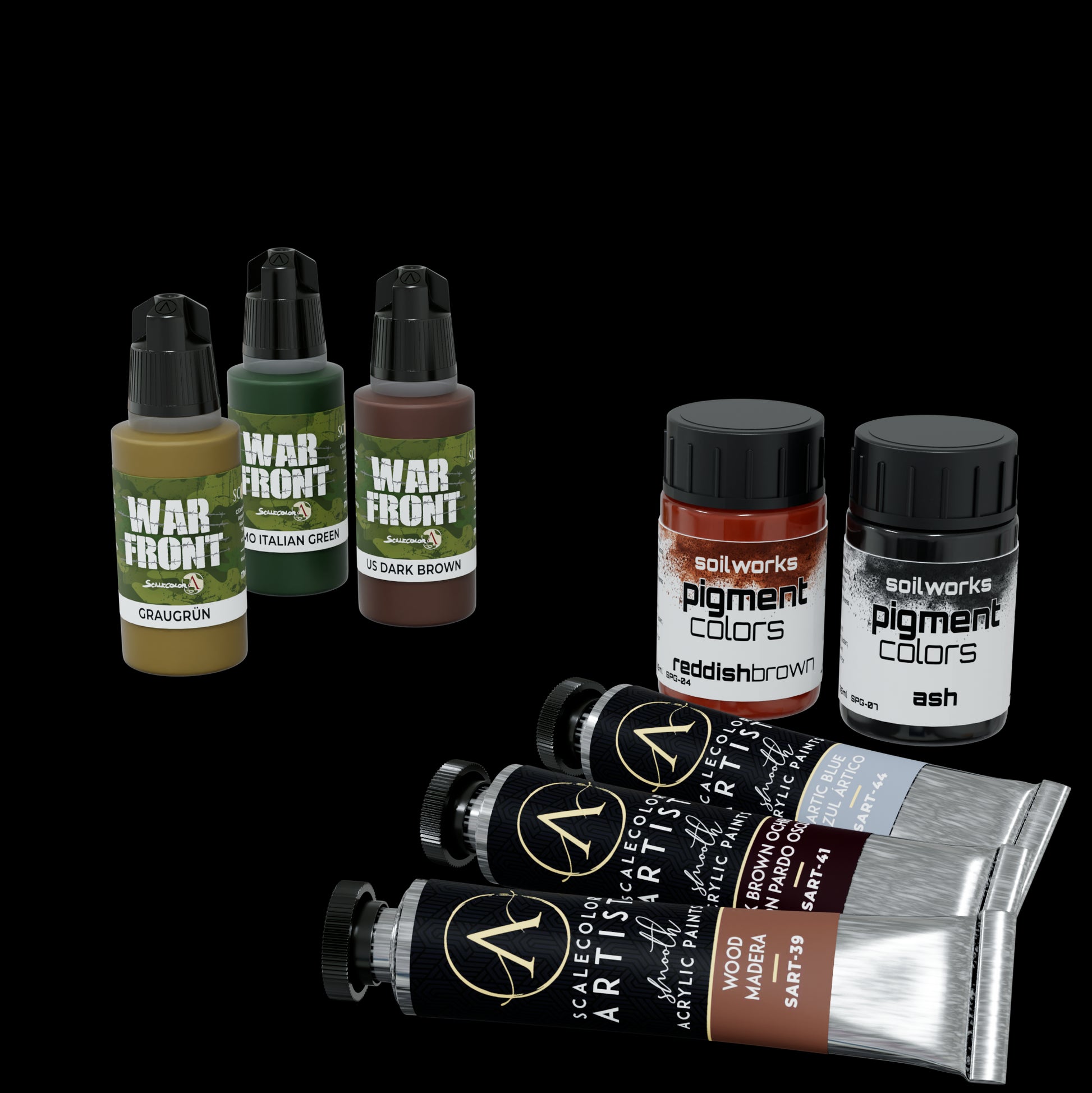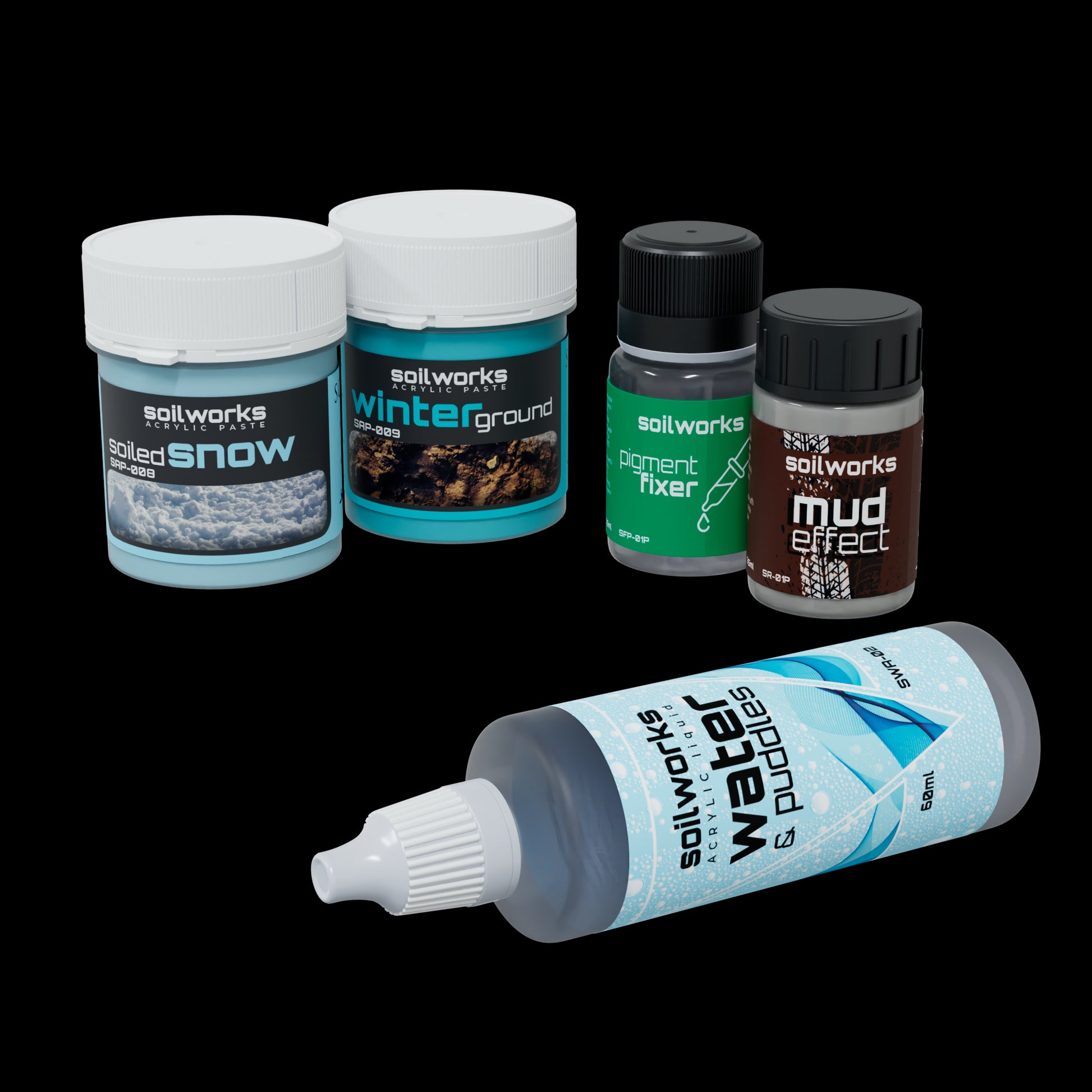 A themed set designed to help you create winter and snowy environments and scenarios. With this selection of materials and paints, you can create large and small scenes for your miniatures, figures, or vehicles, providing you with the necessary products to carry them out. A must-have set for all modelers!