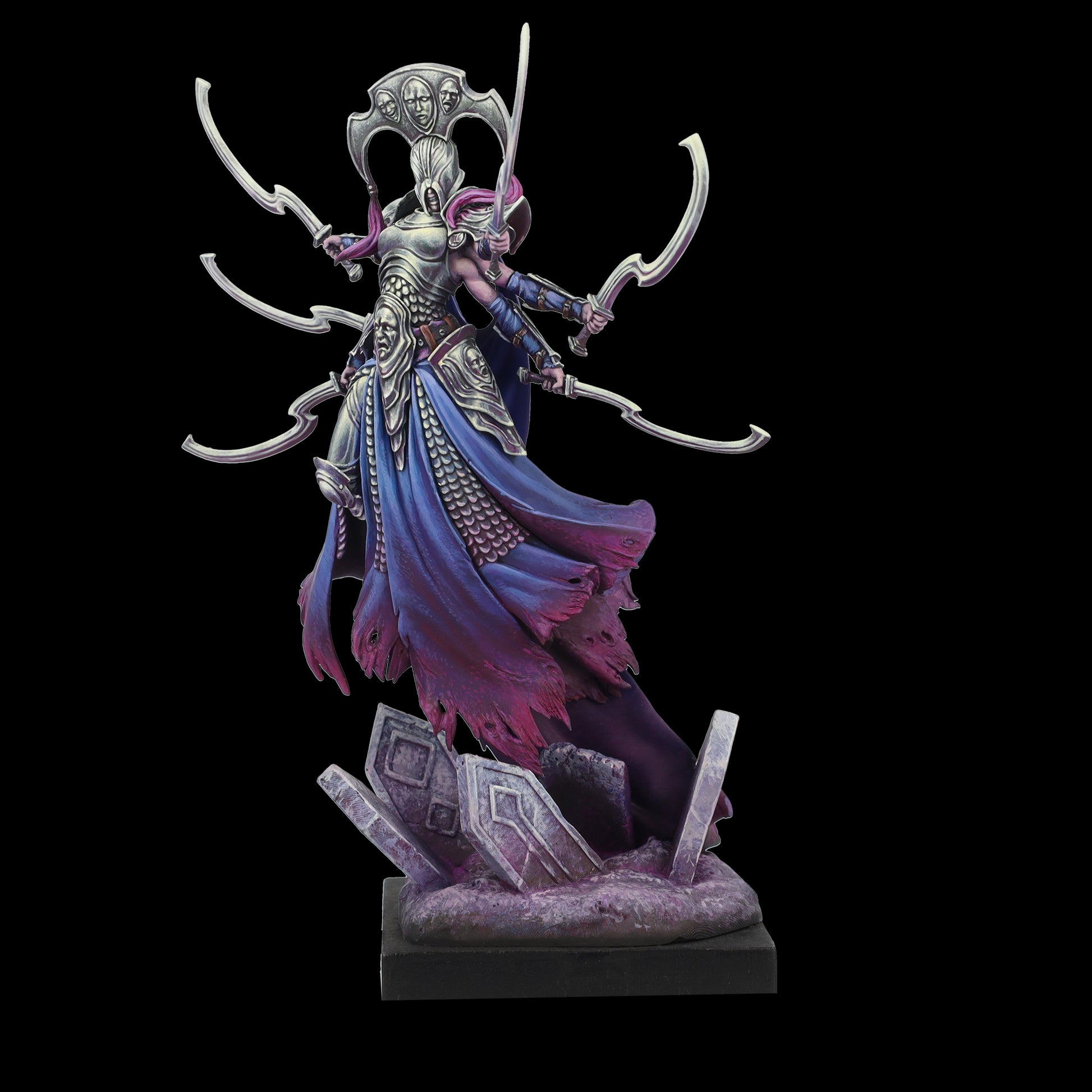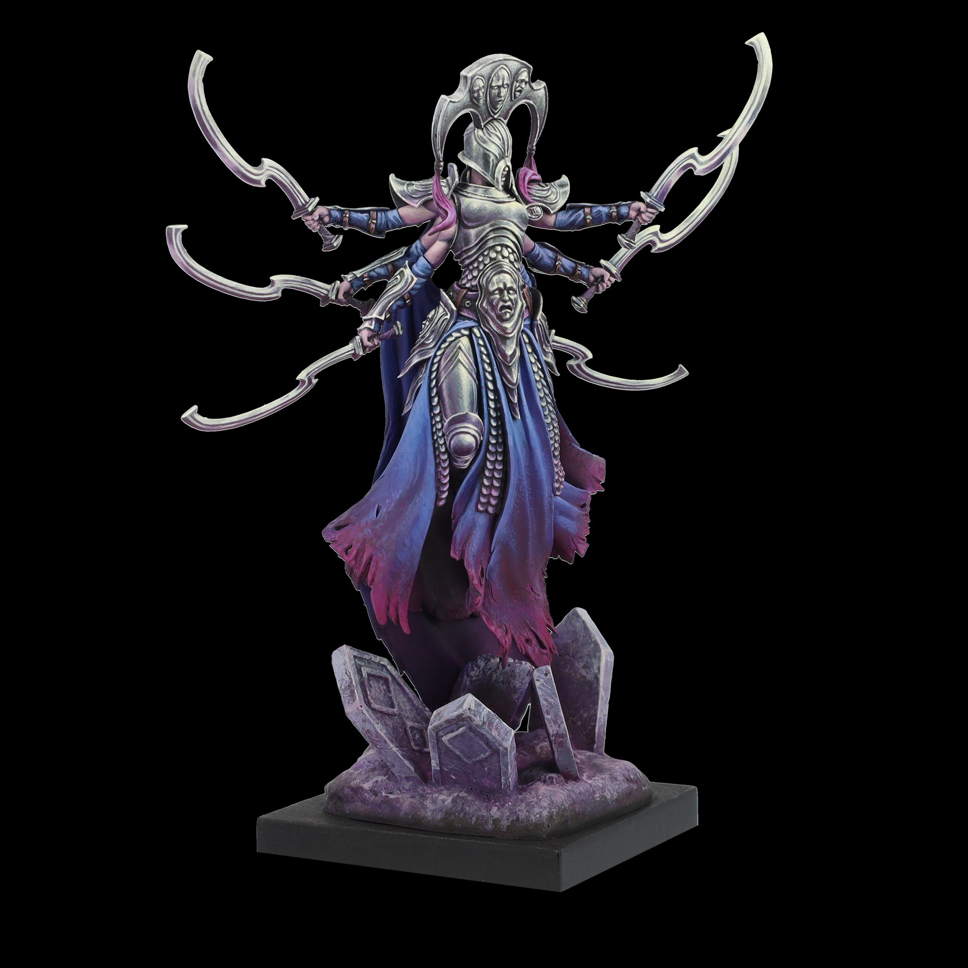Two faces; laughter and tears under the protection of the god of liars, Mercury, giver of his wind-forged swords. Edges of sadness and wit, a journey down the path of madness for the most daring; those who ignored the message of the gods.