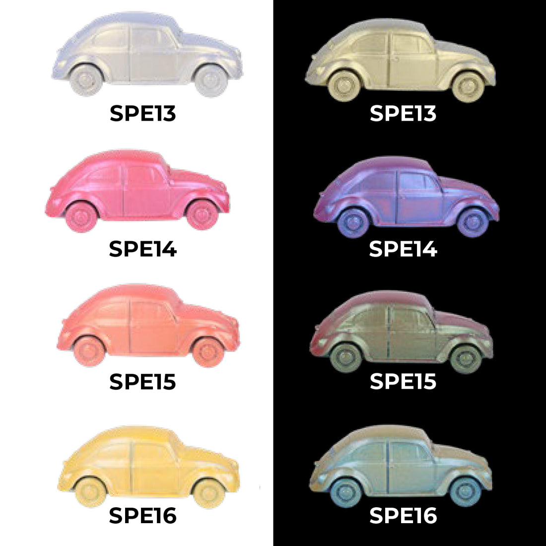 The main feature of these paints is the iridescent effect, which varies the tone of the same color depending on the angle or light reflected.