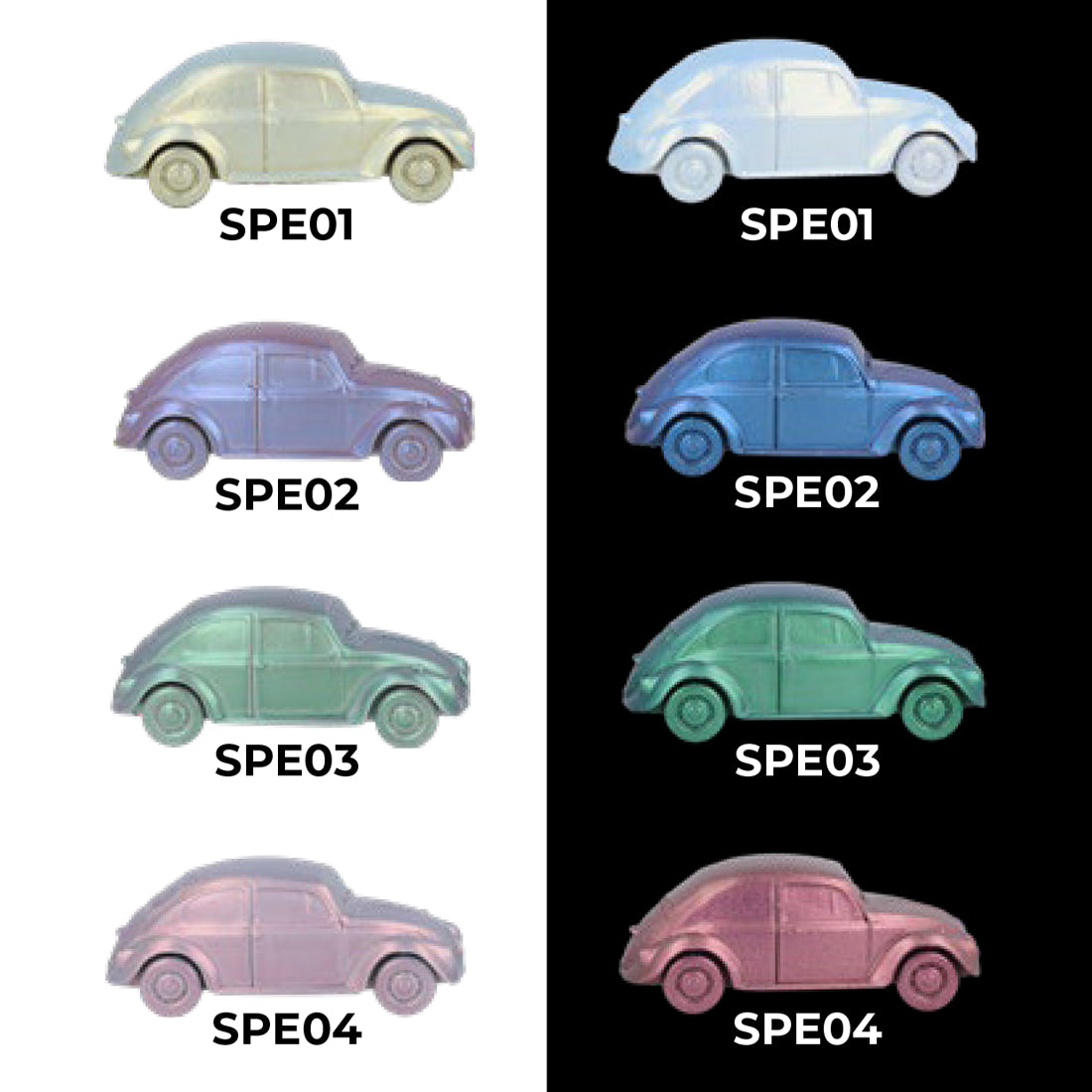 Con Prism Effect, un mismo color crea diferentes efectos metalizados e irisados.