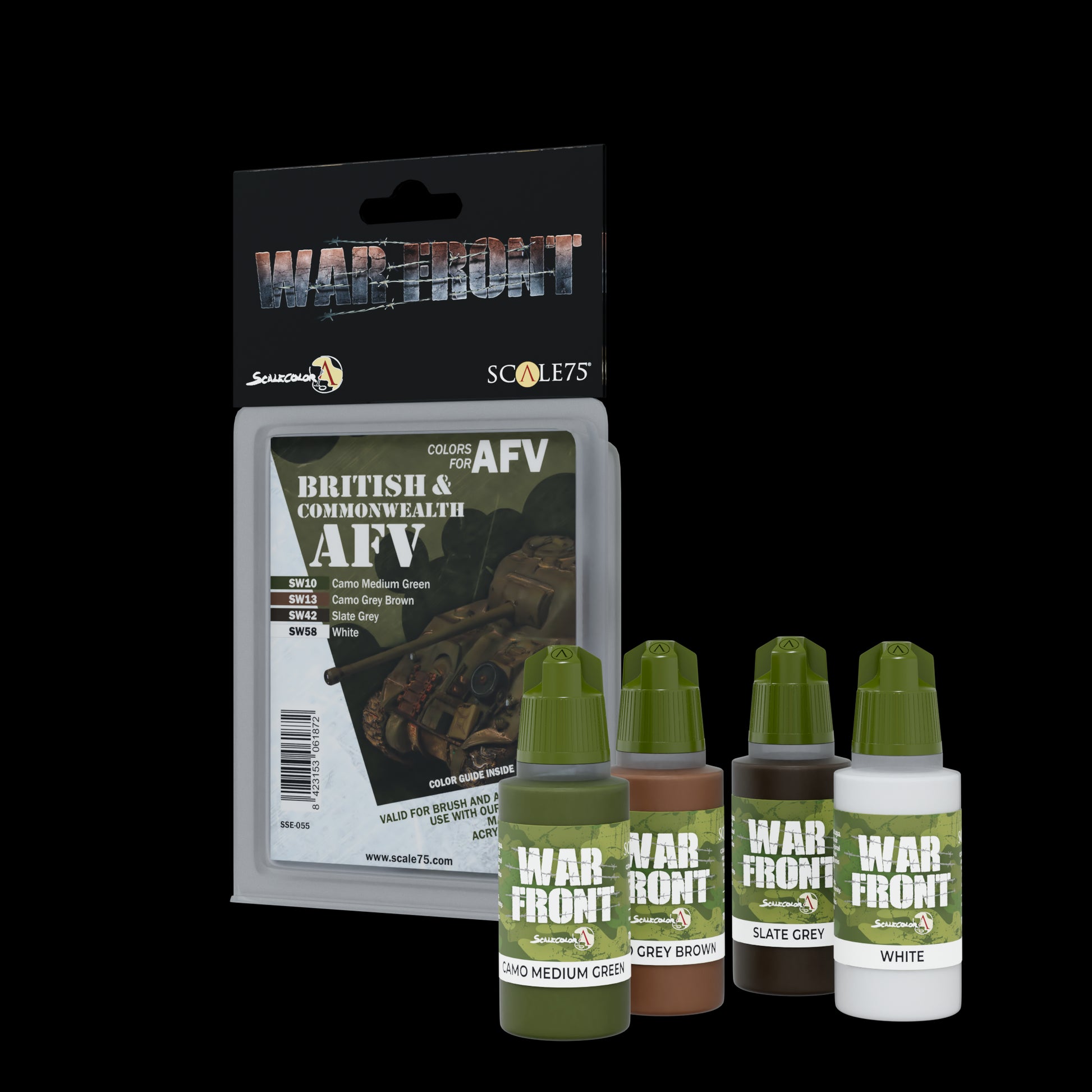 British and Commonwealth AFV. Set de 4 pinturas acrílicas acabado mate, con cuyos colores podremos realizar varios camuflajes usados por vehículos militares del ejército británico y de la Commonwealth en el teatro de operaciones del Noroeste de Europa, durante 1944 y 1945. Estas pinturas tienen una gran resistencia y soportan sin problema cualquier técnica de envejecimiento realizada con óleo, pigmentos y lavados enamel. Antes de usar el bote de pintura perforar el obturador del bote de pintura. Te recomendamos que introduzcas en el bote una bolita o agitador para facilitar la mezcla de la pintura. Usando una buena dilucion con el thinner acrilico podrás aerografiar perfectamente. Preferible usar boquillas en aerógrafo de 0,4 o diametro superior para un buen rendimiento de la pintura.