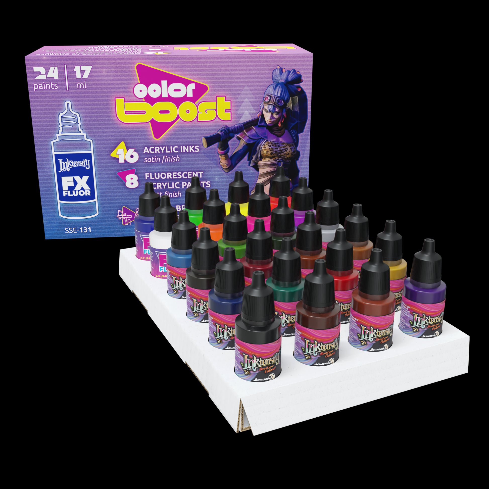 Colección que reune las gamas INKTENSITY y FX EFFECT para que potencies el color de tus miniaturas a través de tintas acrílicas y efectos de fluorescentes.