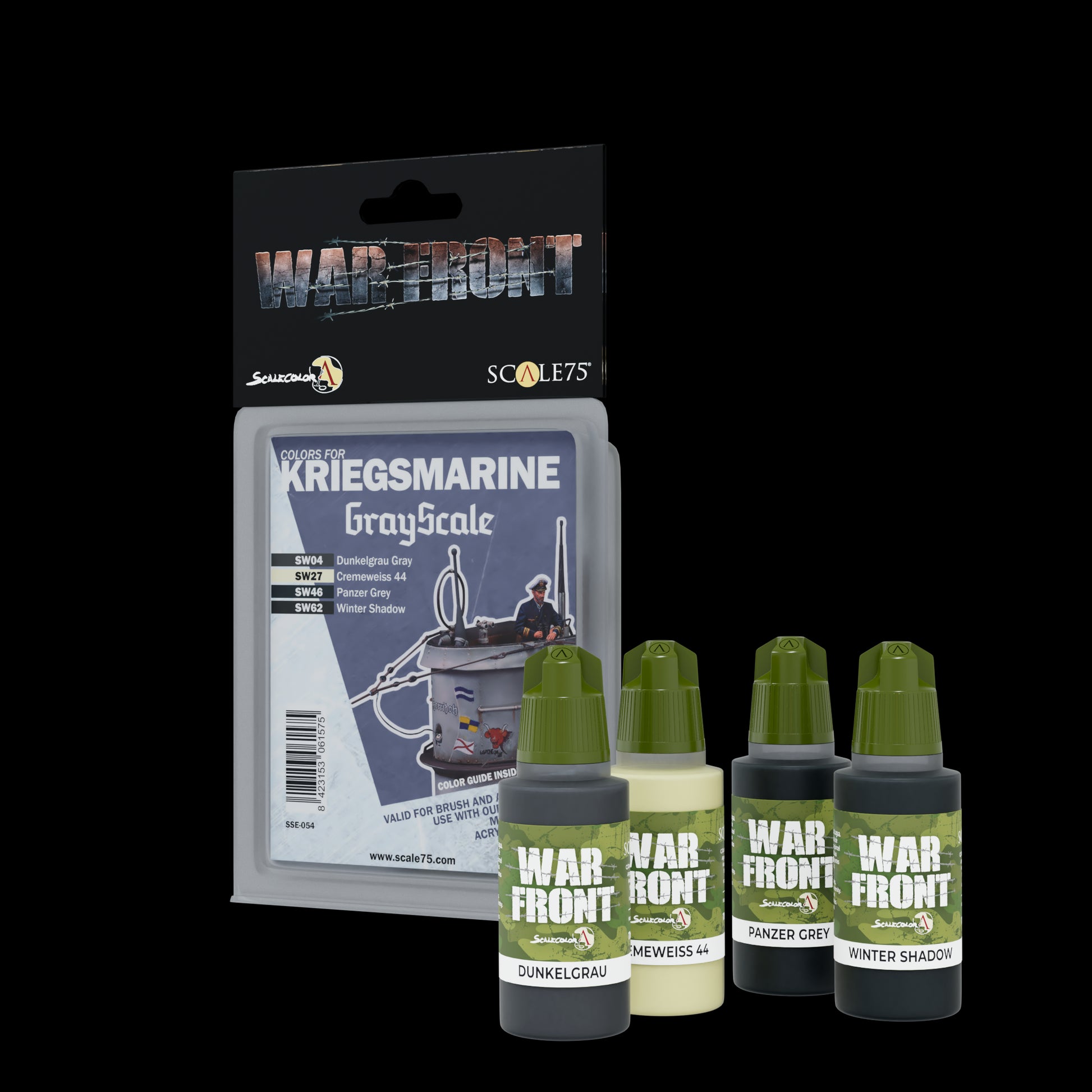 Kriegsmarine Grayscale. Set de 4 pinturas acrílicas acabado mate con los que poder pintar colores básicos usados por los submarinos alemanes U Boot durante la Segunda Guerra Mundial. Estas pinturas tienen una gran resistencia y soportan sin problema cualquier técnica de envejecimiento realizada con óleo, pigmentos y lavados enamel. Antes de usar el bote de pintura perforar el obturador del bote de pintura. Te recomendamos que introduzcas en el bote una bolita o agitador para facilitar la mezcla de la pintura. Usando una buena dilucion con el thinner acrilico podrás aerografiar perfectamente. Preferible usar boquillas en aerógrafo de 0,4 o diametro superior para un buen rendimiento de la pintura.