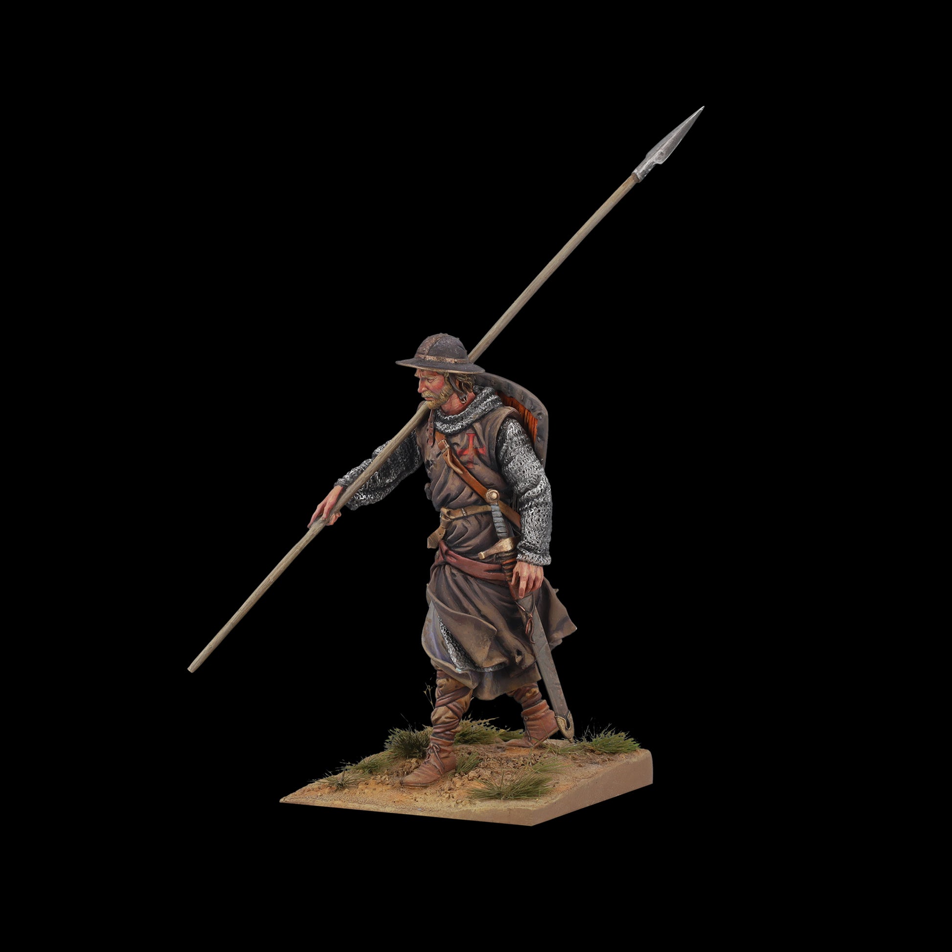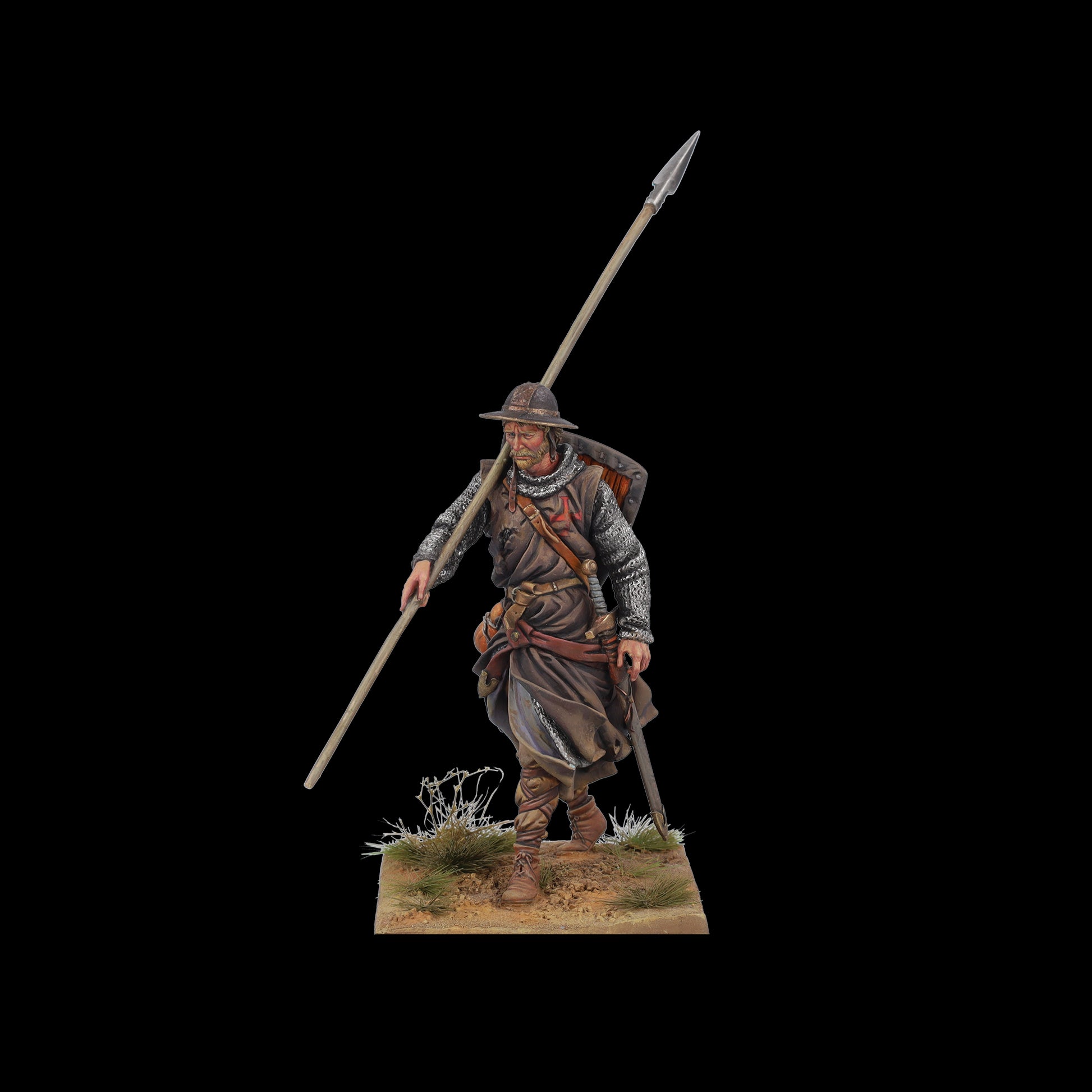 Los Sargentos templarios, lucían la sobrevesta negra y la cruz roja por ambos lados para diferenciarse de los miembros de otras órdenes. Los denominados sargentos, pertenecían a la unidad de combate más reconocida, tanto por su coraje, como por su código de comportamiento y habilidades en el combate. Los Caballeros Templarios, originalmente conocida como La Orden de los Pobres Caballeros de Cristo del Templo de Salomón (Orden del Templo), fue una de las órdenes monásticas militares católicas más poderosas de la Edad Media.