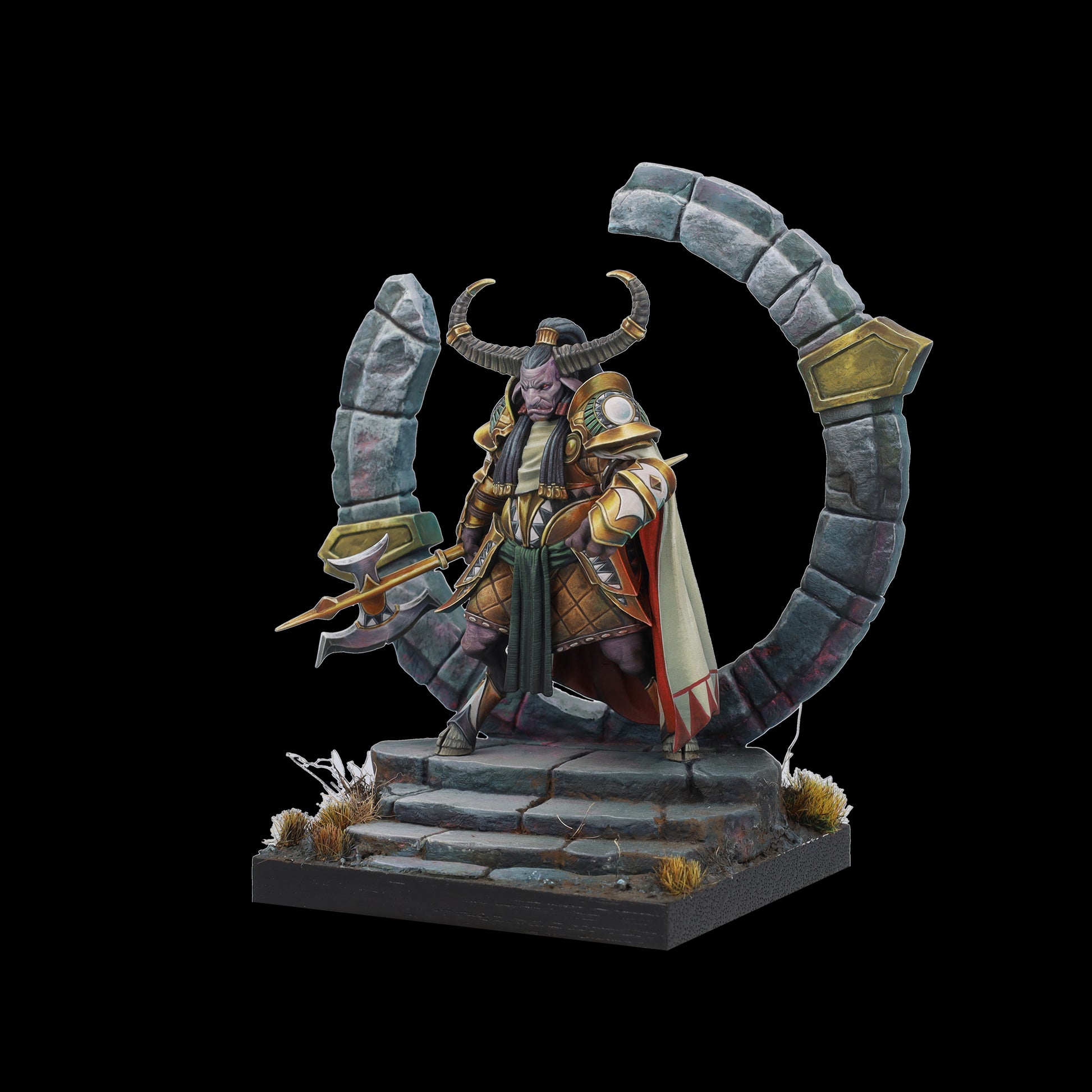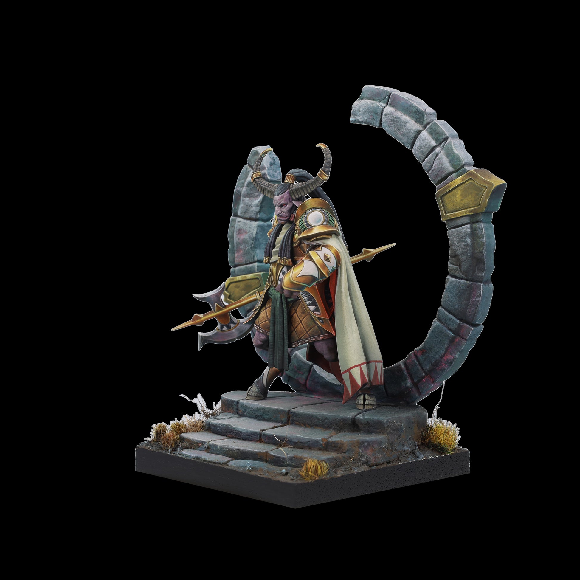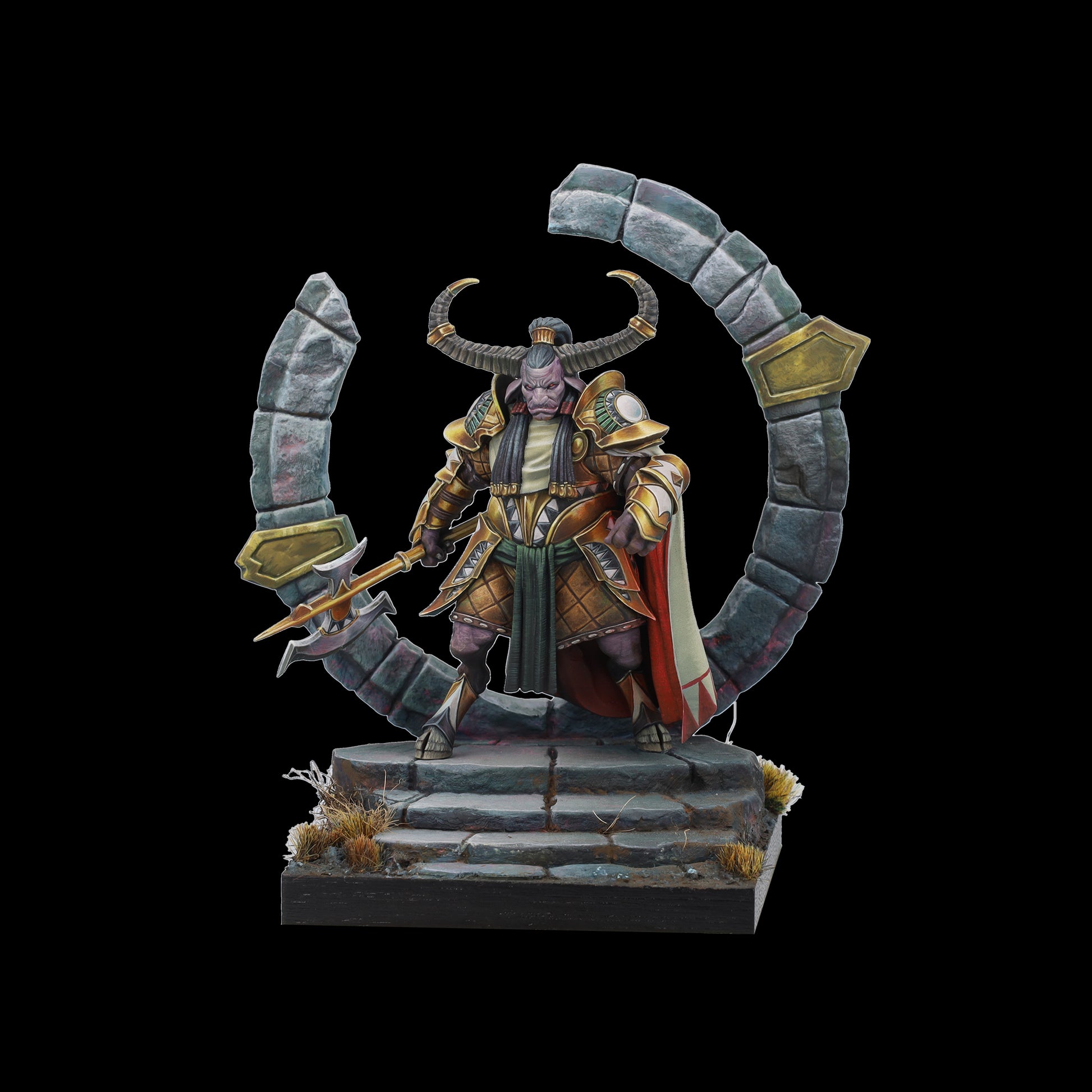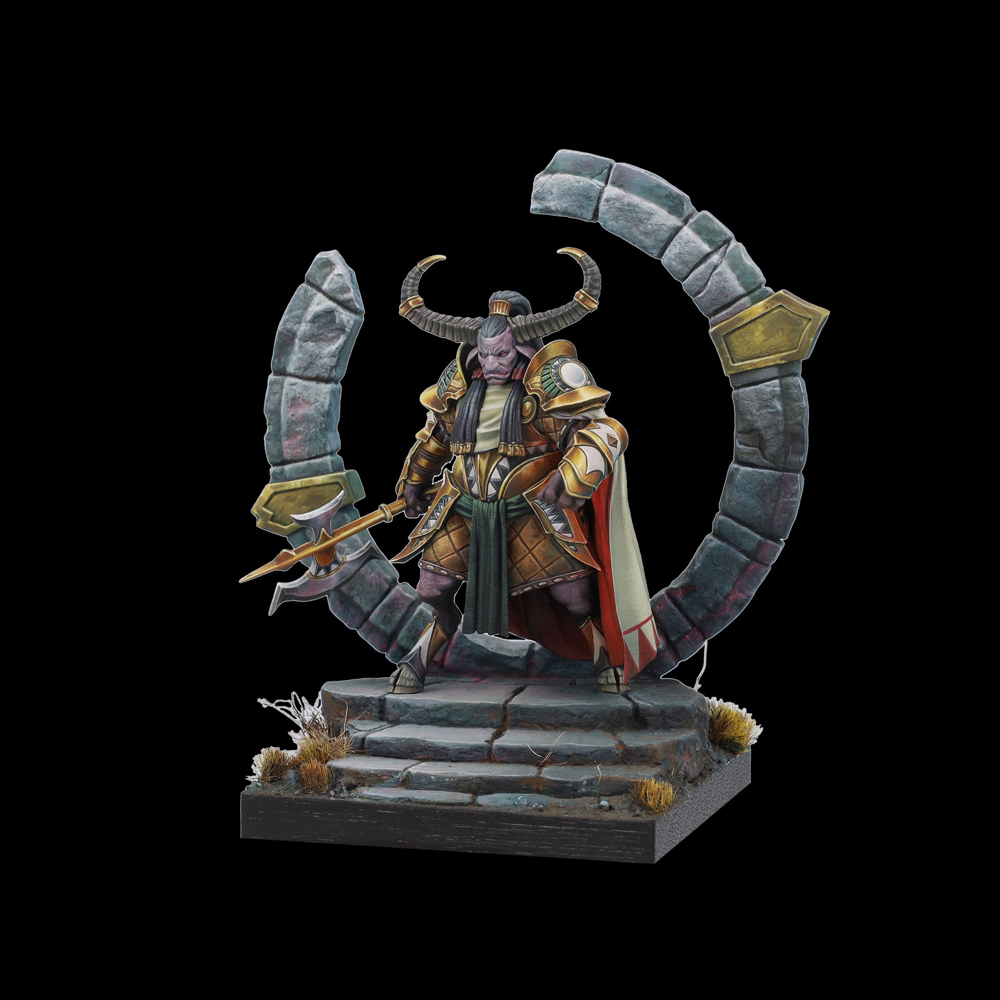 Tauro es tierra y poder, guardián protector del círculo de la vida. Su hacha aporta sensatez a quien osa desafiarle y, bajo su yelmo y su capa, esconde un señor de la guerra; dormido, paciente, al que cuesta encontrar. Un coloso que advierte con su cornamenta, que rompe el suelo y brama un hálito de vaho al miedo. Cuando Tauro ataca no existe la piedad para sus enemigos.