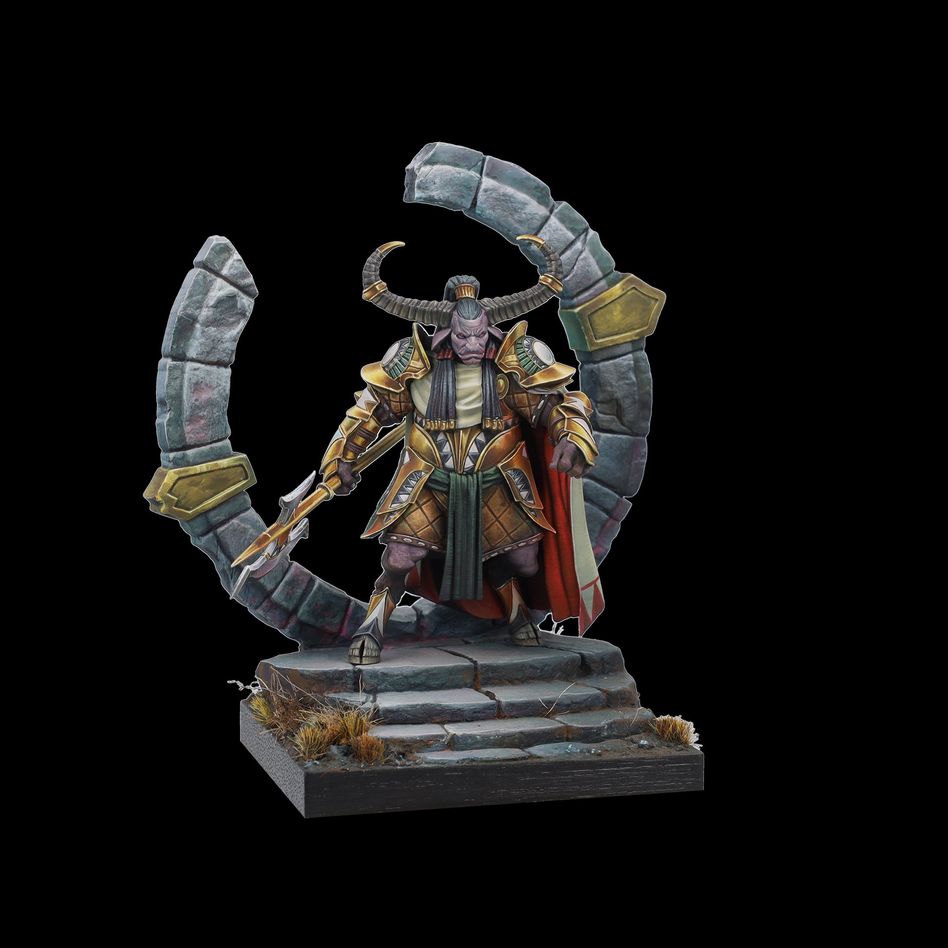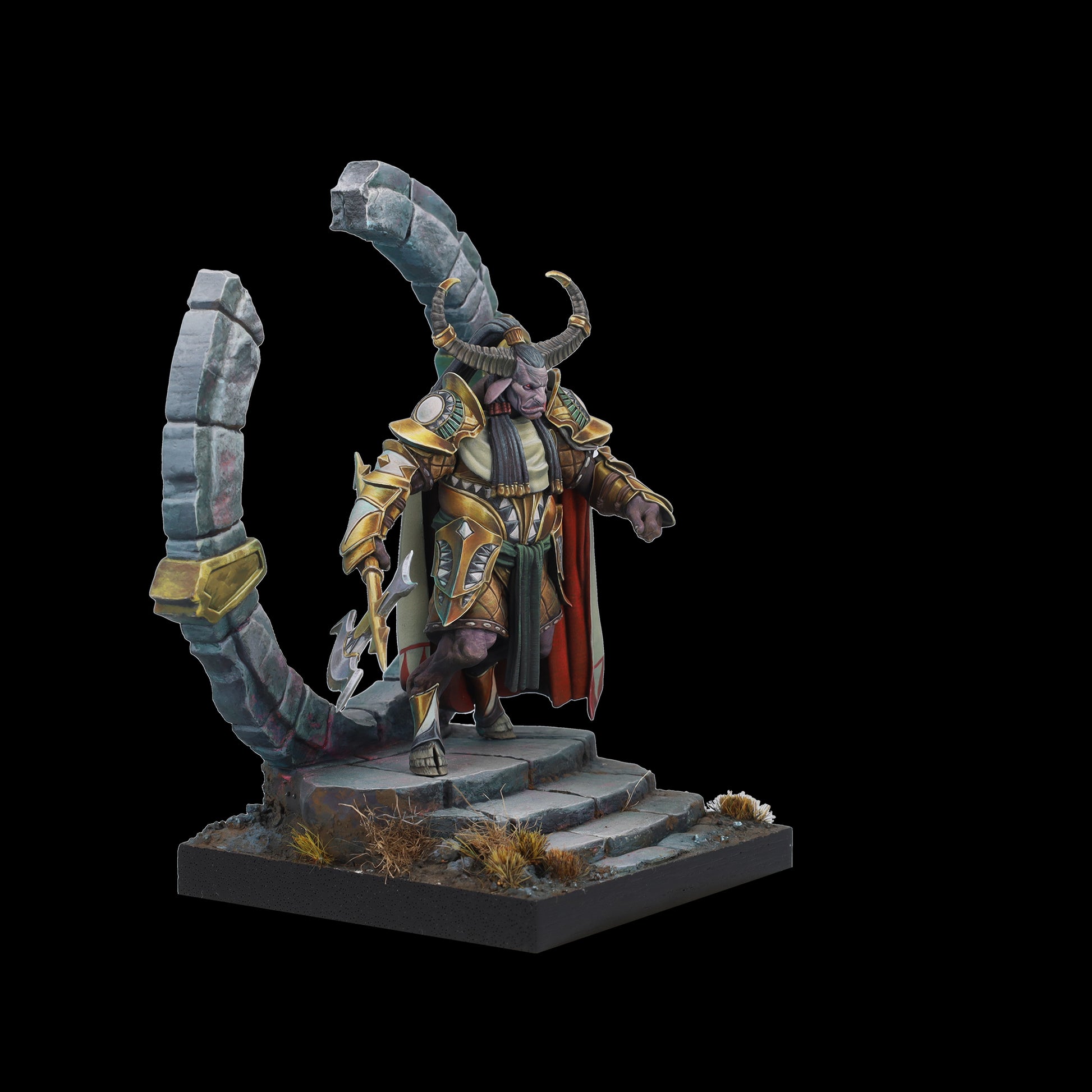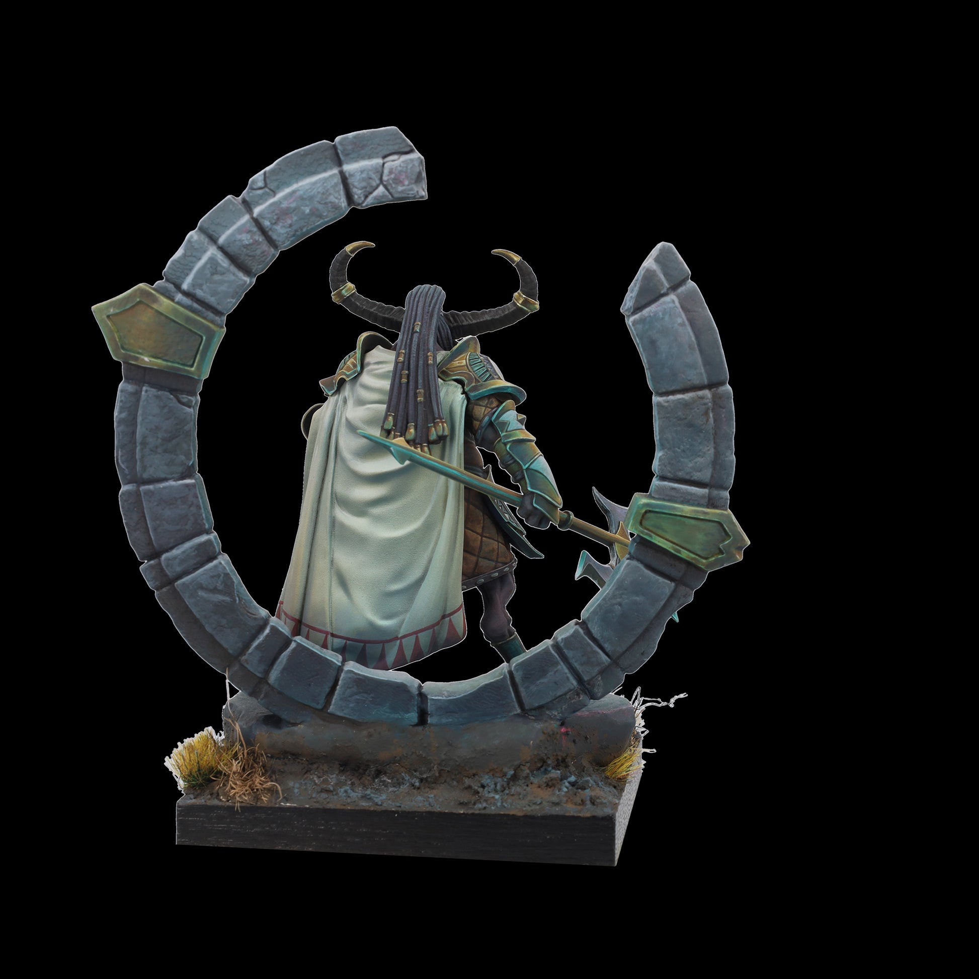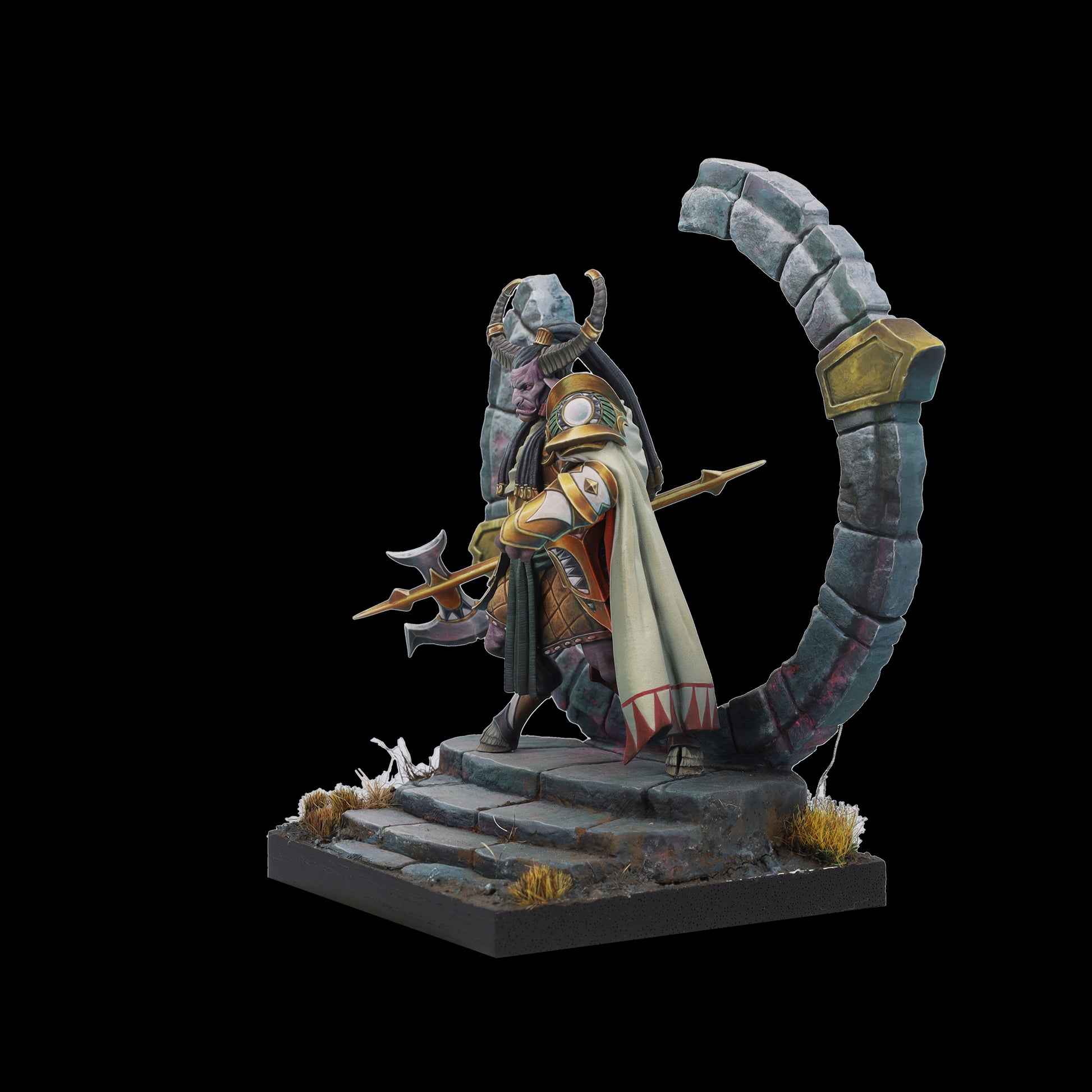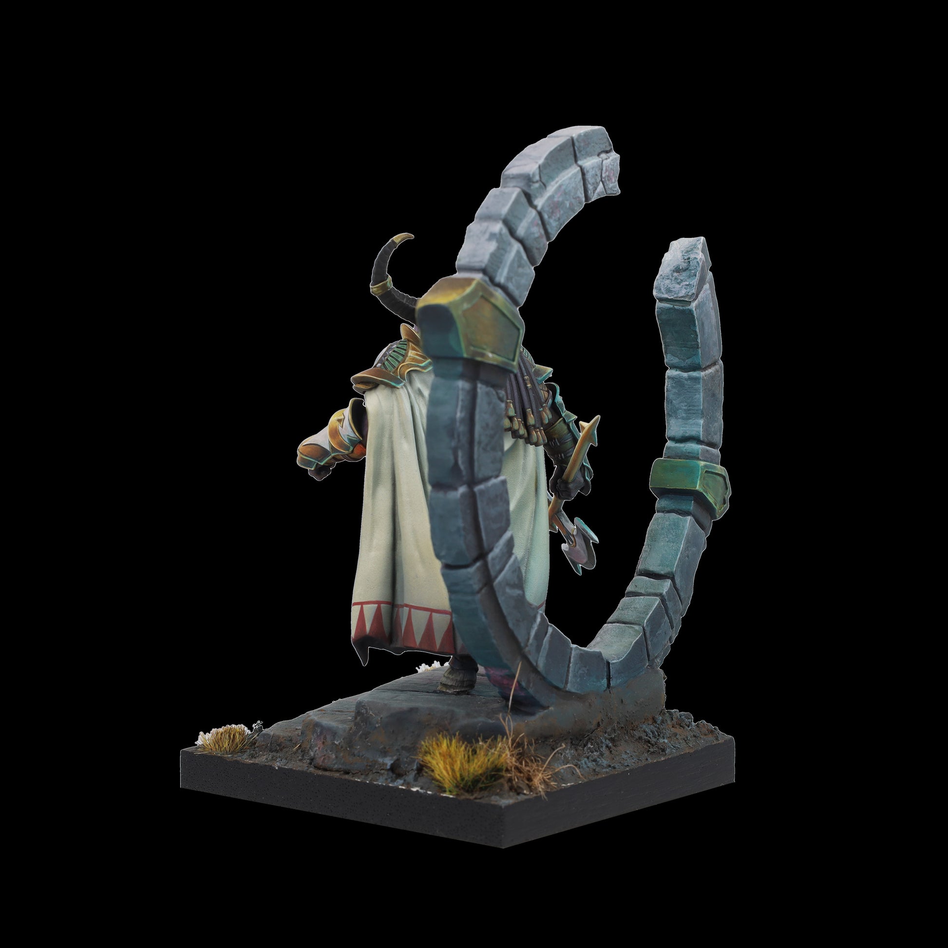Tauro es tierra y poder, guardián protector del círculo de la vida. Su hacha aporta sensatez a quien osa desafiarle y, bajo su yelmo y su capa, esconde un señor de la guerra; dormido, paciente, al que cuesta encontrar. Un coloso que advierte con su cornamenta, que rompe el suelo y brama un hálito de vaho al miedo. Cuando Tauro ataca no existe la piedad para sus enemigos.
