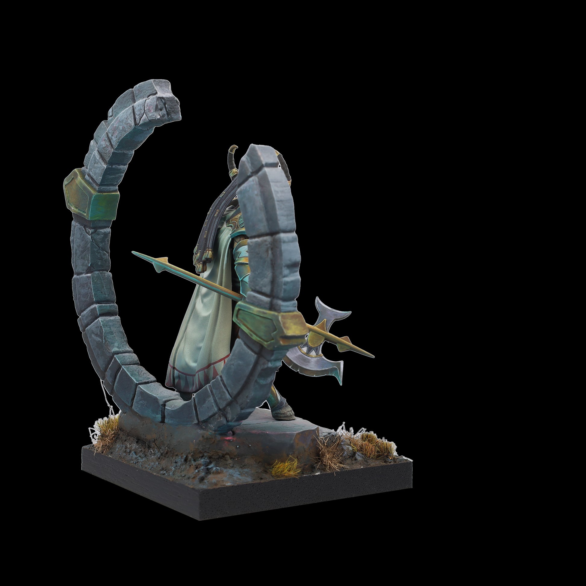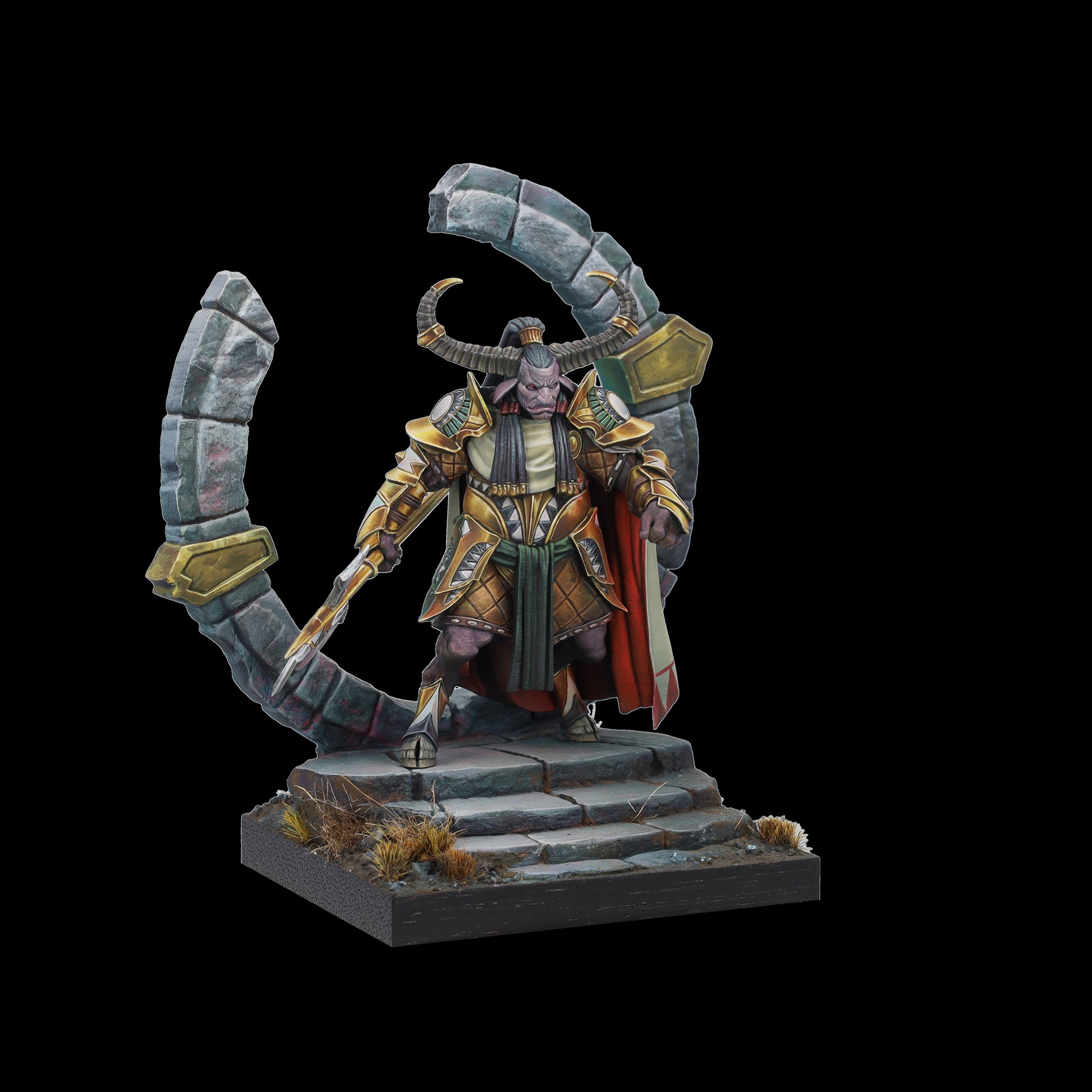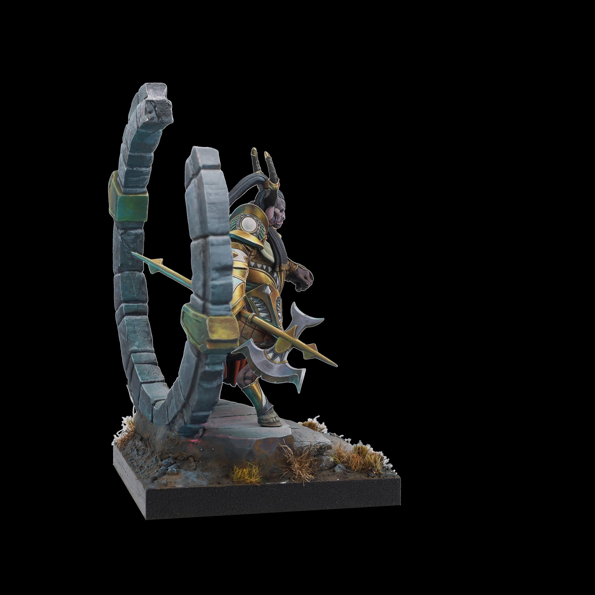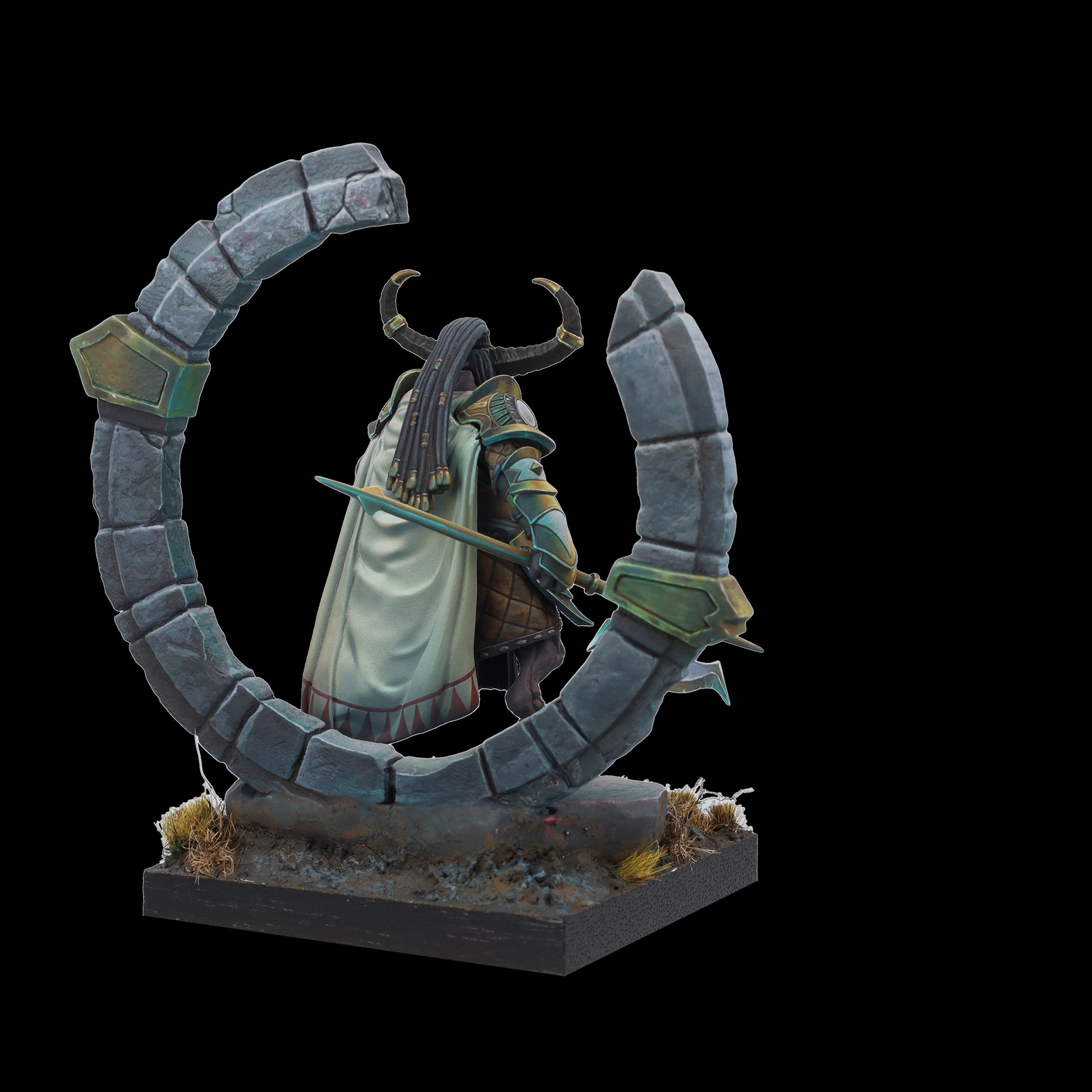 Tauro es tierra y poder, guardián protector del círculo de la vida. Su hacha aporta sensatez a quien osa desafiarle y, bajo su yelmo y su capa, esconde un señor de la guerra; dormido, paciente, al que cuesta encontrar. Un coloso que advierte con su cornamenta, que rompe el suelo y brama un hálito de vaho al miedo. Cuando Tauro ataca no existe la piedad para sus enemigos.
